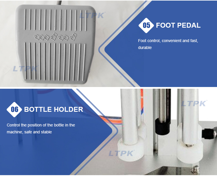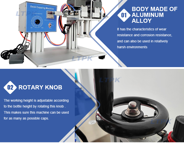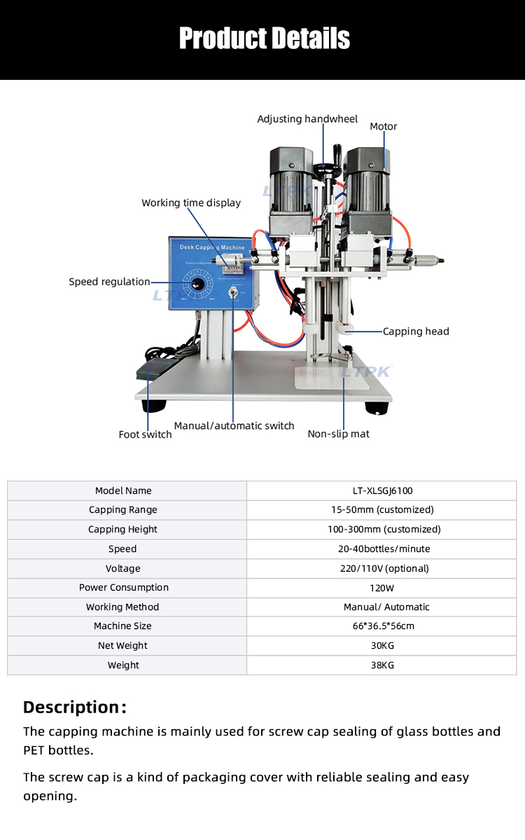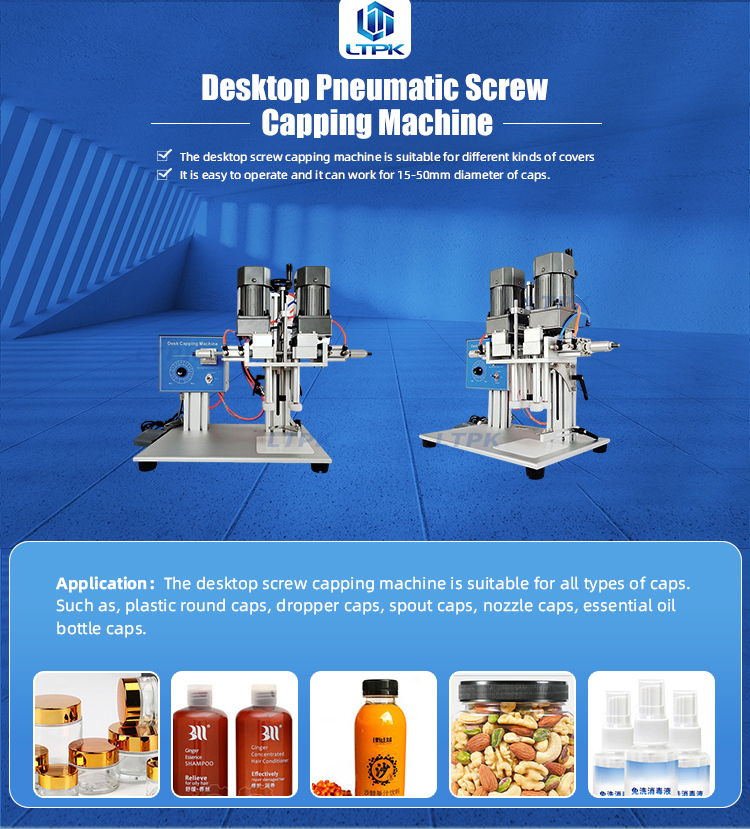 The desktop screw capping machine is suitable for all types of caps. Such as, plastic round caps, dropper caps, spout caps, nozzle caps, essential oil bottle caps.
