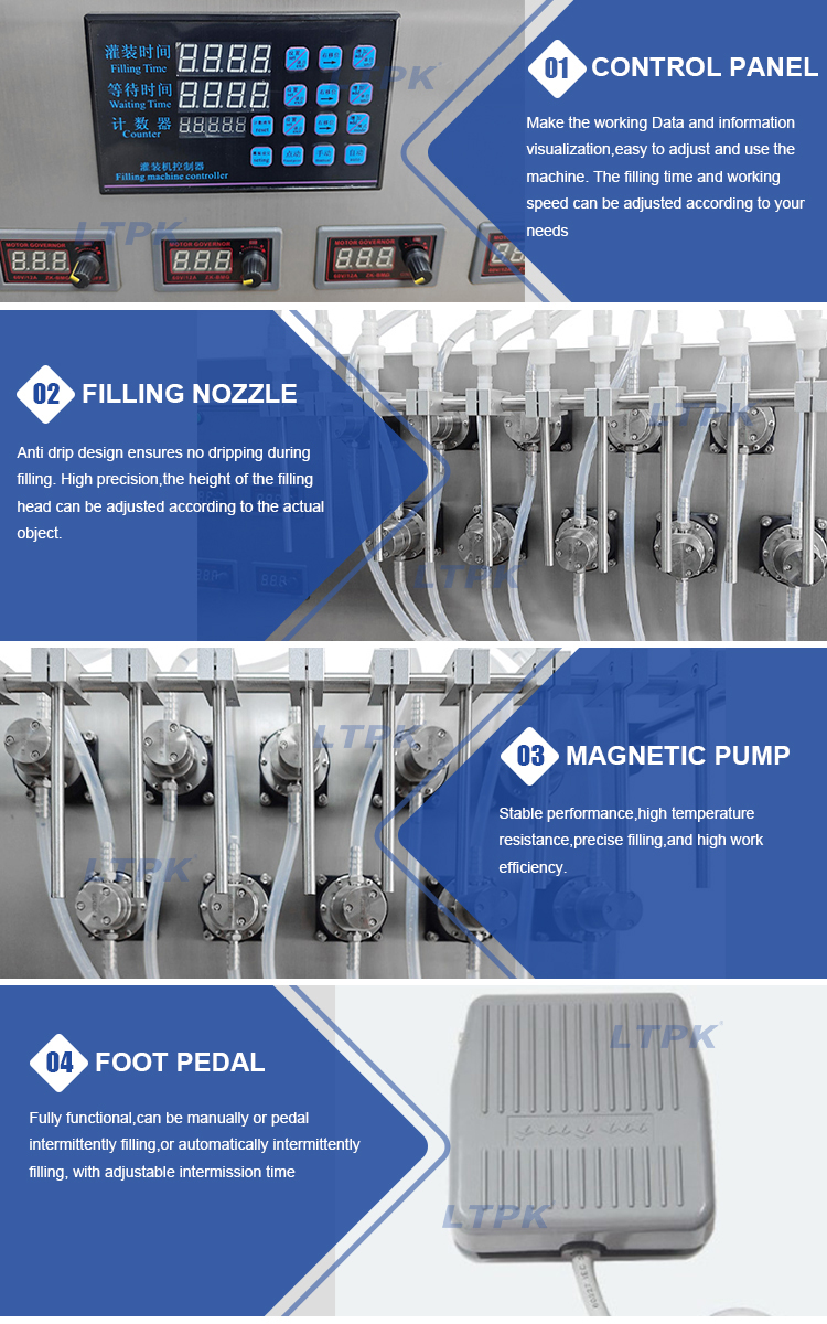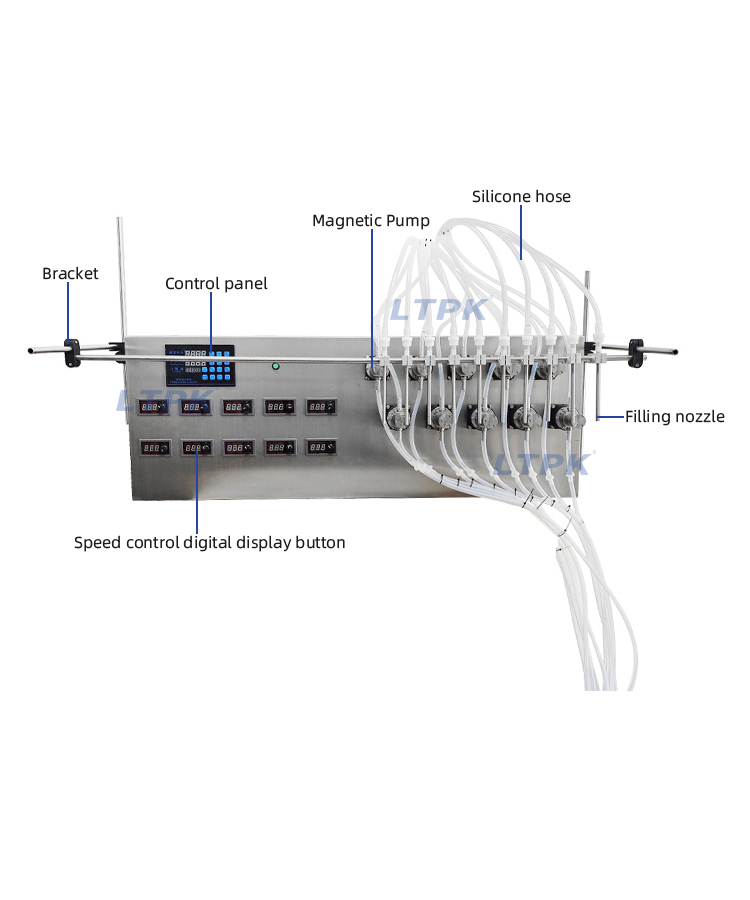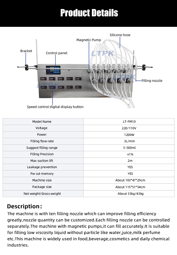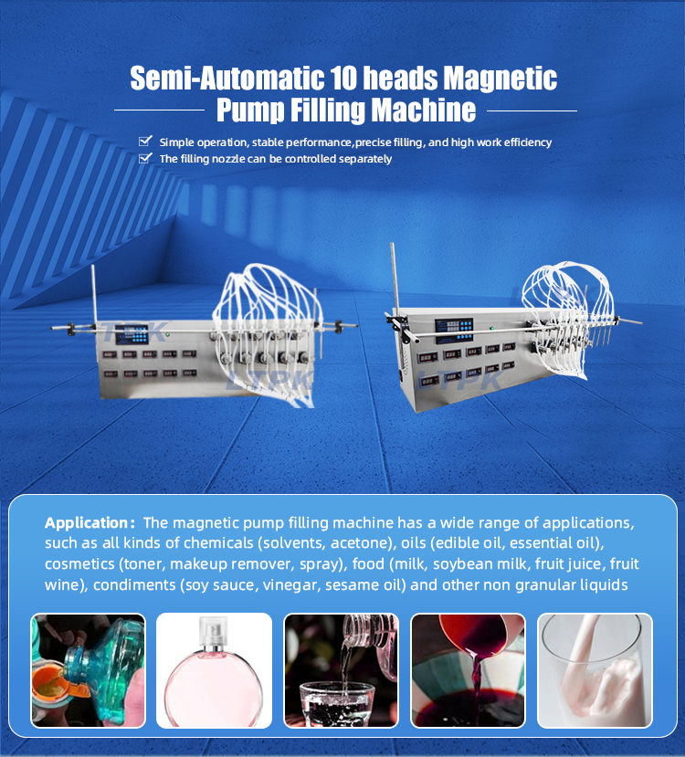 LT-FM10 5-500ml Semi-Automatic 10 Heads Magnetic Pump Filling Machine Oil Milk Juice Soy Sauce Perfume Toner Water Bottle Filler